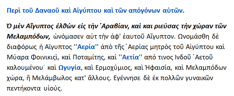 Ο Αίγυπτος ήταν δίδυμος αδελφός του Δαναού.! Ο Αίγυπτος κυρίευσε την χώρα των Μελαμπόδων και της έδωσε το όνομά του.