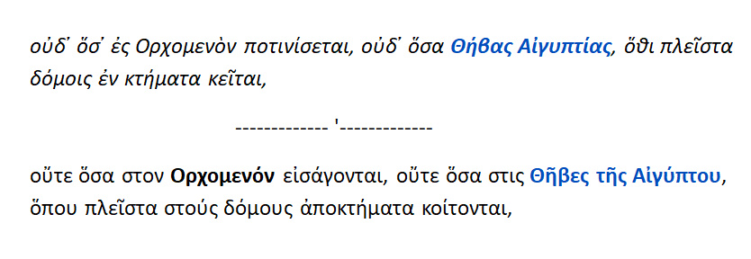 Παλαιότερα η Αίγυπτος λεγόταν Θήβαι . Ο Όμηρος δεν αναφέρει πόλεις στο Δέλτα , όπως τη Μέμφιδα. Άρα ο Ποιητής αναφέρεται σε γεγονότα ΠΡΙΝ την ίδρυση της Μέμφιδος . Πότε ιδρύθηκε η Μέμφις ; { Η πόλη ιδρύθηκε περί το 3100 ΠΚΕ από τον Μήνη,..}