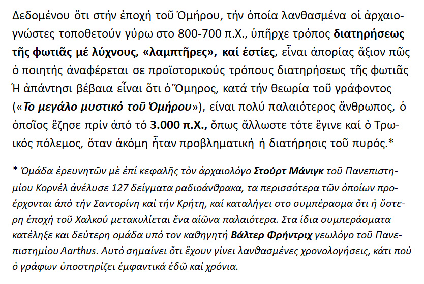 Η εποχή του Ομήρου λανθασμένα τοποθετείται από τους αρχαιογνώστες το 800-700π.χ. Ο Όμηρος έζησε πριν από το 3.000 π.χ.