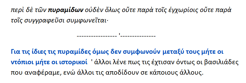 << Για τις πυραμίδες όμως δεν συμφωνούν μεταξύ τους μήτε οι ντόπιοι μήτε οι ιστορικοί …>>.