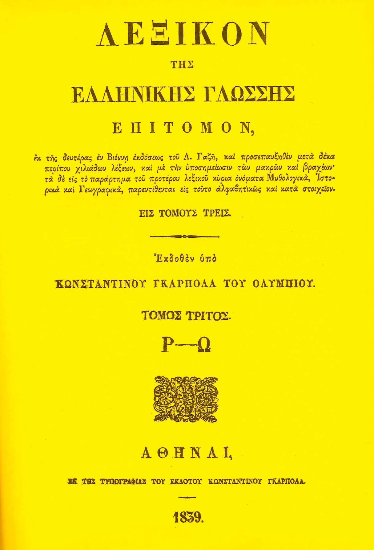 LIDDELL & SCOTT – » Μέγα λεξικόν της Ελληνικής γλώσσης ».