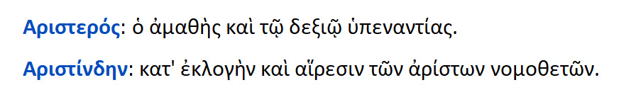 Τα αριστεία εν τέλει είναι ρετσινιά ; Εάν είναι, καλώς τα καταργεί η κυβέρνηση δια μέσου της κληρώσεως , προσπαθώντας να αποδιώξει τα αριστοκρατικά αυτά κατάλοιπα της.. αξιοκρατίας [; ] και της ..άμιλλας [; ] . Τούδε και στο εξής όλοι οι μαθητές θα είναι ίσοι [ ως προς τι ;] ως εκ τούτου θα αναδεικνύεται και ο σημαιοφόρος ,όχι δια της ευγενούς άμιλλας ,αλλά δια της κληρώσεως .Η αρχή της ελάσσονος προσπάθειας και της εκπαιδεύσεως άνευ παιδεύσεως.! Όλα τα προαναφερθέντα δεν είναι υποθέσεις αλλά ιδεολογικές θέσεις μίας μηδιζούσης , προοδευτικής {;} και προπάντων Μνημονιακής »αριστεράς» .Το φαιδρό και θλιβερό ταυτόχρονα είναι , ότι προσπαθούν να πείσουν ,πως αυτά τα επιχειρήματα { προϊόντα ημιμαθείας μάλλον και πνευματικής συγχύσεως } εδράζονται στο Δημοκρα-τικό πολίτευμα και μάλιστα στην ..Αρχαία Αθηναϊκή Δημοκρατία. !! ‘Όπως γράφει και ο αρθρογράφος της εφ.» ΑΥΓΗ » , Ν. Σαραντάκος , που απηχεί εν πολλοίς και τις κυβερνητικές θέσεις : η ανάδειξη ηγετών με κλήρωση αποτελεί ακρογωνιαίο λίθο της δημοκρατίας ! Καταβάλλει προσπάθεια να το σώσει στο τέλος με ένα <θαρρώ> . Δεν νομίζω όμως ότι είναι θέμα θάρρους ,αλλά αληθείας. Η δε αλήθεια είναι θέμα γνώσης κι όχι θάρρους.
