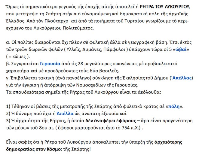 ΡΗΤΡΑ ΛΥΚΟΥΡΓΟΥ {η βάση της αρχαιότερης Δημοκρατίας στον κόσμο.}
