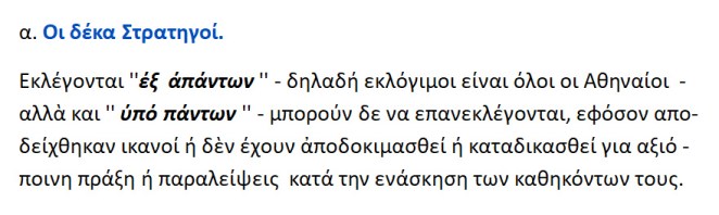 <<Εκλέγουν όλες τις στρατιωτικές αρχές : Δέκα Στρατηγούς και αποφασίζουν με ψηφοφορία , ποια καθήκοντα θα ασκήσει ο καθένας..>>