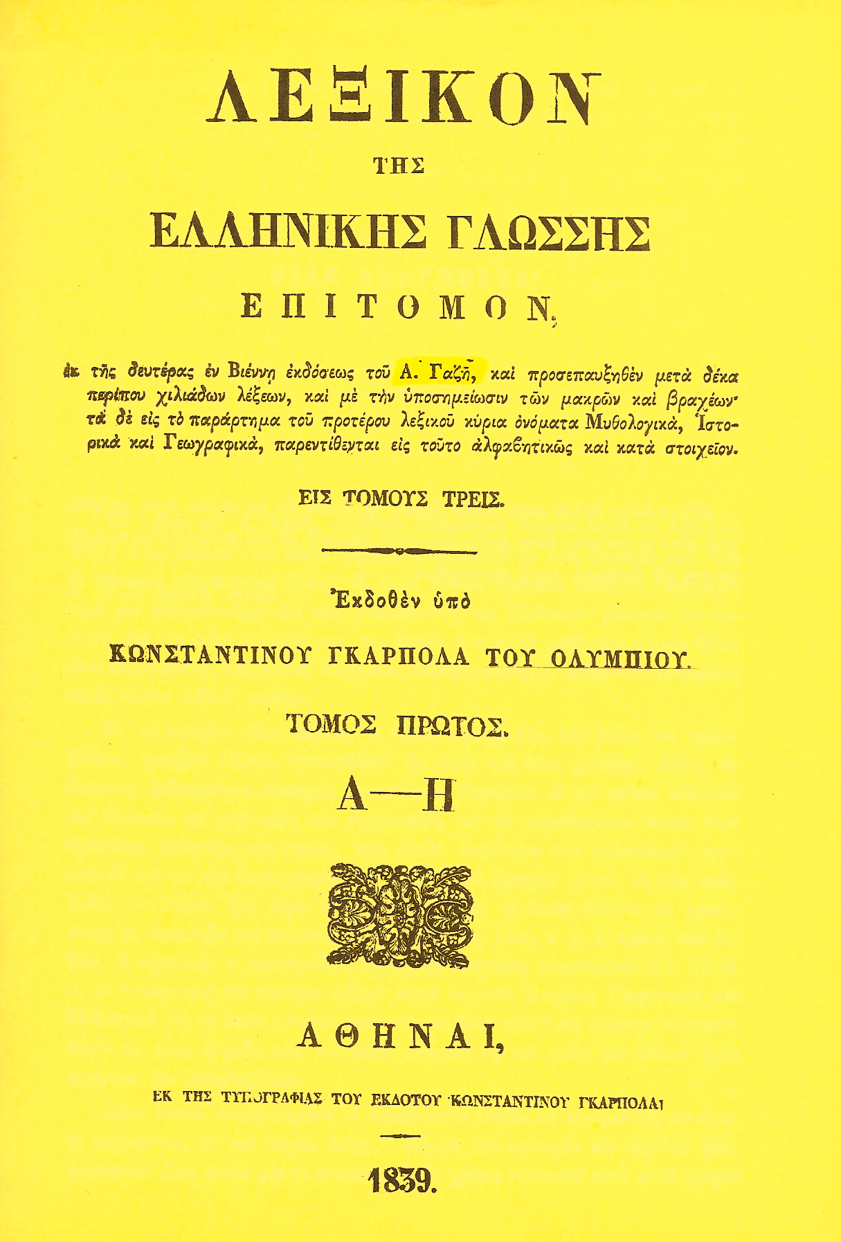 Ι.ΣΤΑΜΑΤΑΚΟΥ – » Λεξικόν της Αρχαίας Ελληνικής γλώσσης ».