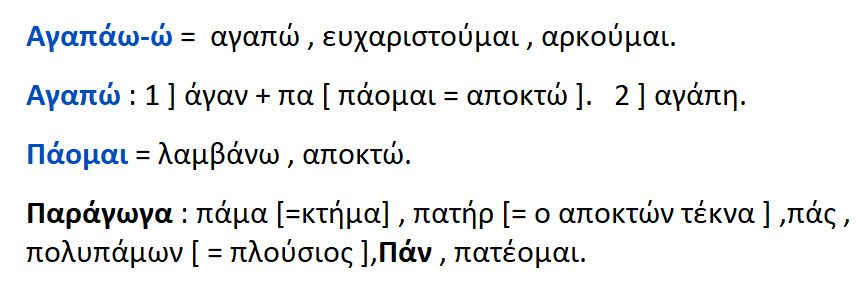 Λαμβάνω { ριζ. ΛΑΒ– }. Λαβή ,λαβίδα, λήψις [ λήψη ] , λήπτης , λάβος ,επαν-ειλημμένως.
