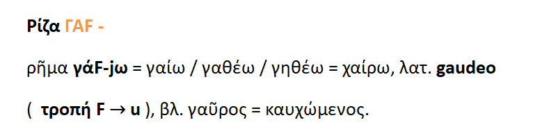 { Ριζ.ΛΑF- } > Λάω : 1] Από-λαύω 2] Λαμβάνω , »πιάνω».