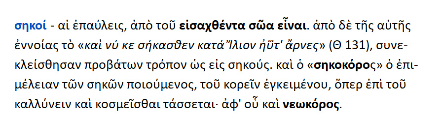 Σηκοί = οι επαύλεις . Από του εισαχθέντα σώα είναι. Σηκοκόρος = νεωκόρος.