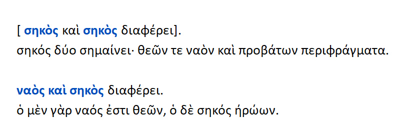 Σηκός = ναός θεών και περιφράγματα προβάτων. Ναός εστί θεών , σηκός ηρώων.{ =ο ναός είναι για τους θεούς και ο σηκός για τους ήρωες }