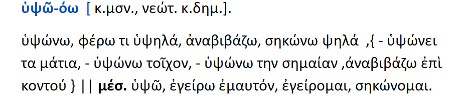 Υψόω -ώ = εγείρω , φέρω τι υψηλά , αναβιβάζω ,σηκώνω ψηλά .