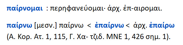 Παίρνω < επαίρνω [ μεσν.] < επαίρω [ αρχ.]