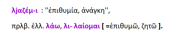λiαζέμ -ι =επιθυμία, ανάγκη.{ λάω , λιλάομαι = επιθυμώ ,ζητώ }