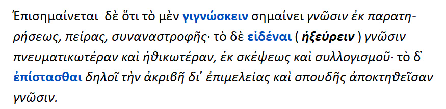 Το γιγνώσκειν – Το ειδέναι – Το επίστασθαι .