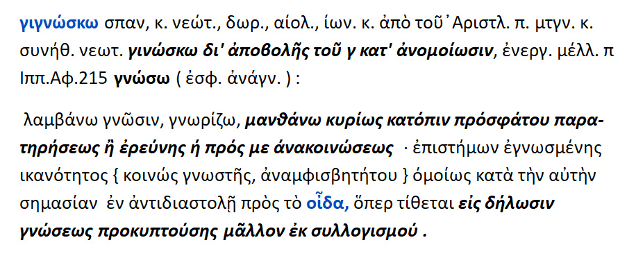 ΓΙΓΝΩΣΚΩ – ΟΙΔΑ – ΕΠΙΣΤΑΜΑΙ.