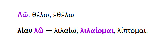 Λώ = εθέλω , θέλω. Λιλαίομαι { λίαν + λώ } =θέλω πολύ.