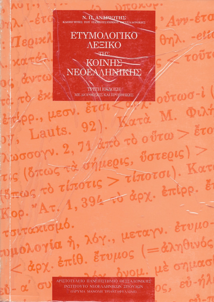 ΝΙΚ.ΑΝΔΡΙΩΤΗ – » Ετυμολογικό Λεξικό της κοινής Νεοελληνικής ».
