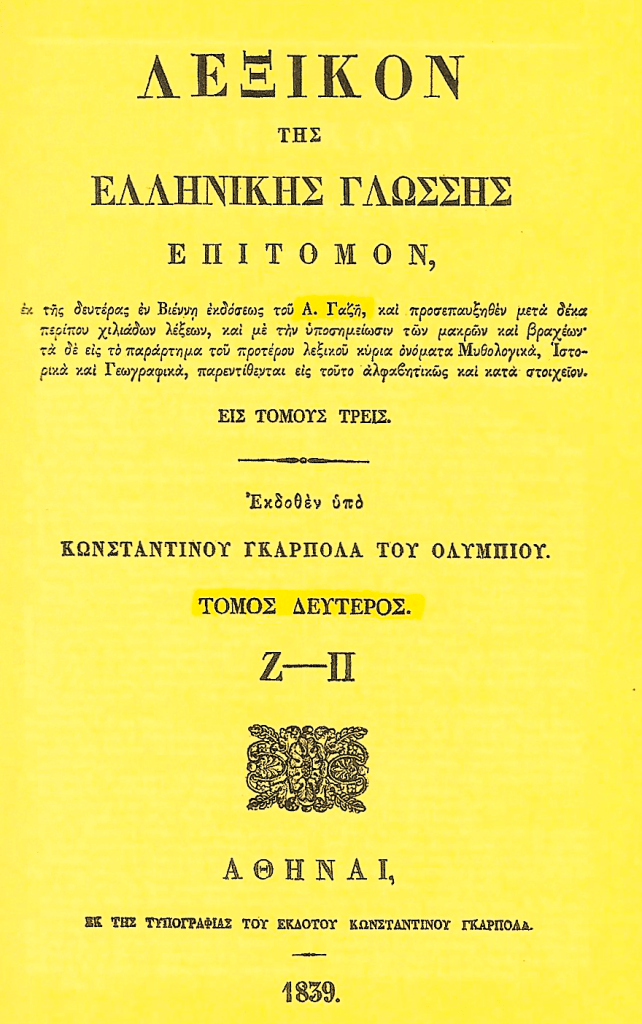 ΑΝΘ.ΓΑΖΗ – » Λεξικόν της Ελληνικής γλώσσης ».