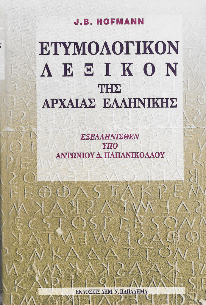 J.B.HOFMANN – » Ετυμολογικόν Λεξικόν της Αρχαίας Ελληνιικής ».