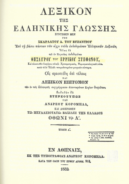 ΣΚΑΡΛΑΤΟΥ του ΒΥΖΑΝΤΙΟΥ – » Λεξικόν της Ελληνικής γλώσσης ».