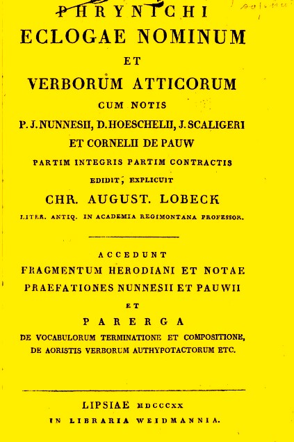ΑΜΜΩΝΙΟΥ – » Λεξικόν Ομοίων και Διαφόρων λέξεων ».