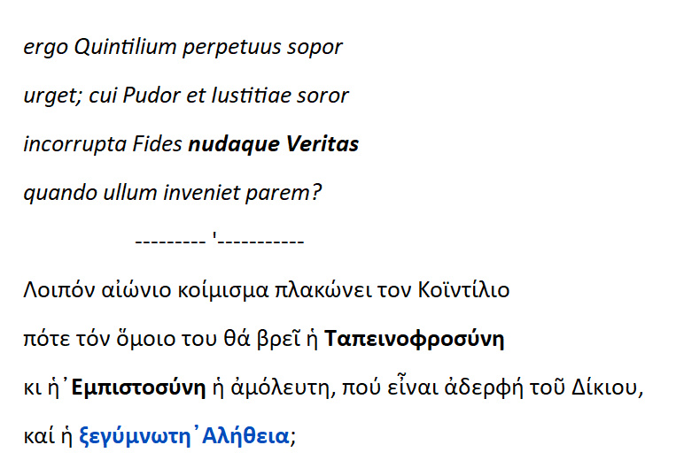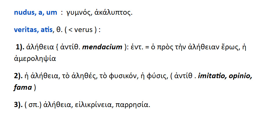 {*} ΕΥΣΤΡ. ΤΣΑΚΑΛΩΤΟΥ – » Λεξικό Λάτινο- Ελληνικό ».Nuda Veritas .
