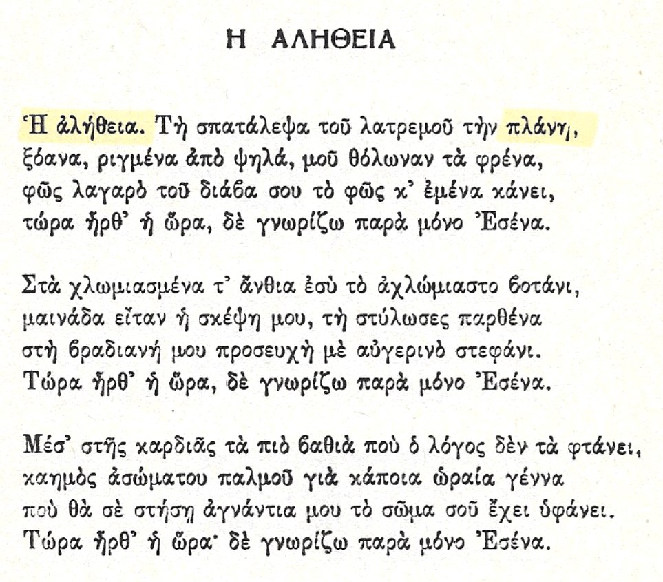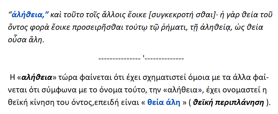 Αλήθεια = θεία + άλη { θε’ι’κή παραπλάνηση }.Η θε’ι’κή κίνηση του όντος.