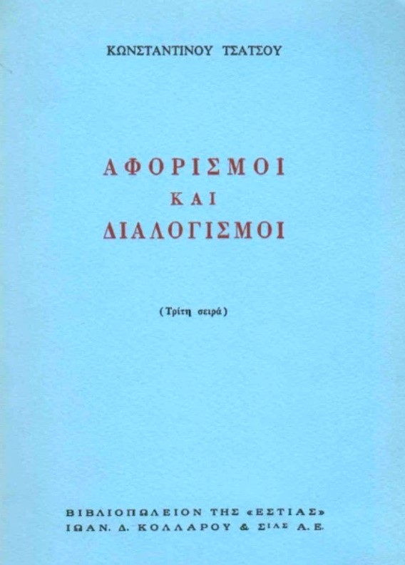 ΚΩΝ.ΤΣΑΤΣΟΥ – » Αφορισμοί και Διαλογισμοί », τρίτη σειρά .