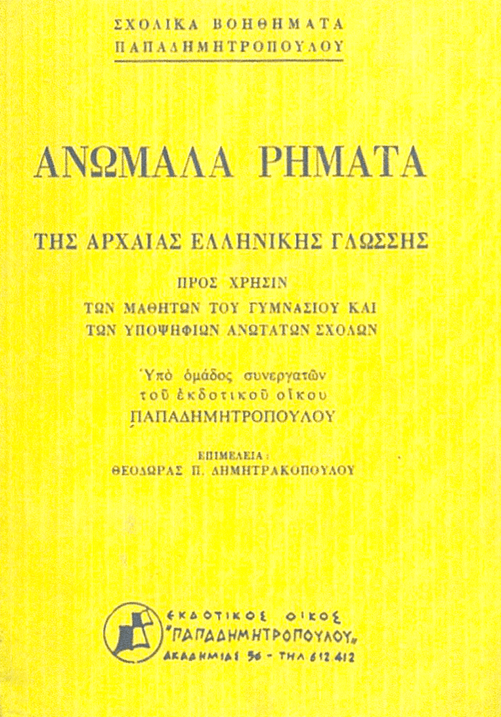 ΠΑΠΑΔΗΜΗΤΡΟΠΟΥΛΟΥ – » Ανώμαλα ρήματα της Αρχαίας Ελληνικής γλώσσης ».