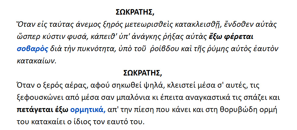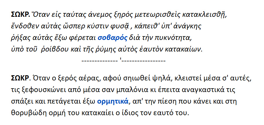 Ο Στρεψιάδης ρωτάει τον Σωκράτη τί είναι κεραυνός . Σοβαρός = ορμητικός.