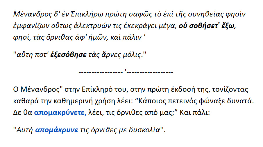 { * } Ερμηνεία βεβαίως χρειάζονται οι Χρησμοί των Μαντείων ,ως διφορούμενοι , προφορικοί ,δυσνόητοι και αινιγματώδεις, εκπορευόμενοι δε από τον Λοξίαν Απόλλωνα δια μέσου της Πυθίας . Οι λέξεις χρήζουν λεξικών για να αποσαφηνιστεί το περιεχόμενό τους ,διότι ‘ σοφόν το σαφές’ και όχι το ασαφές . Και όσοι επιθυμούν διακαώς την εκμάθηση και κατανόηση της ελληνικής γλώσσας { εξαιρούνται οι ψευτοεγωιστές , οι αλαζόνες και οι ξερόλες} είναι απαραίτητο να συμβουλεύονται τα ΚΑΛΑ ΛΕΞΙΚΑ. Ποια είναι τα καλά λεξικά ; Τα ετυμολογικά λεξικά ασφαλώς είναι τα ΚΑΛΑ άρα ΑΛΗΘΙΝΑ λεξικά .Διότι έτυμον είναι το αληθές , το πραγματικό , το βέβαιο. Τ’ άλλα είναι απλώς ερμηνευτικά λεξικά ή συνωνύμων.