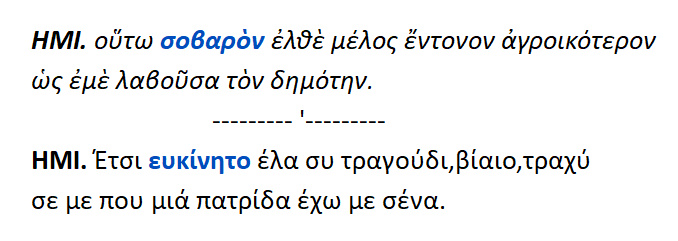 »σοβαρόν μέλος» = ελαφρά μελωδία { προς το αγροικότερον }.