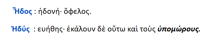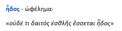 Ήδος = ηδονή ,όφελος. Ηδύς = ευήθης { έτσι έλεγαν και τούς κουτούτσικους ,χαζοβιόληδες }.