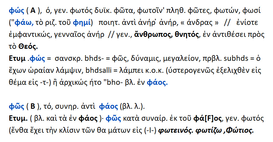 Άλλο ο Φώς { < φάω < φημί , με οξεία } = άνδρας και άλλο το Φως { < φάος < φάFος , με περισπωμένη } = φως .
