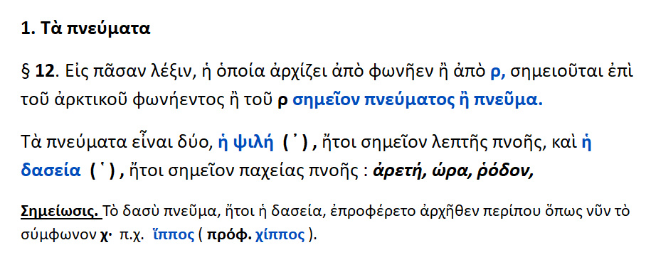 Τα πνεύματα. Η δασεία επροφέρετο αρχικά περίπου όπως σήμερα το σύμφωνο [ χ ].π.χ. ίππος = χίππος.