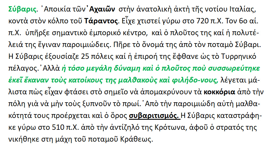 { ** } Συβαρίτες , Σύβαρις και συβαριτισμός.