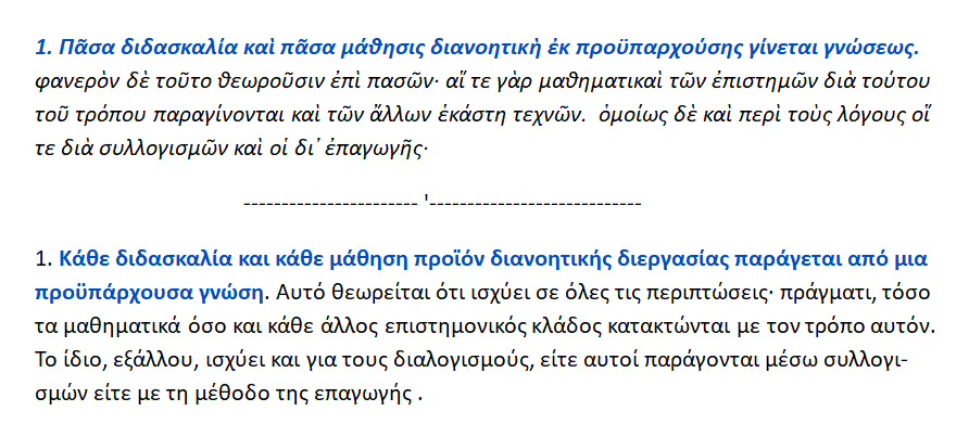 » Πάσα διδασκαλία και πάσα μάθησις διανοητική εκ προϋπαρχούσης γίνεται γνώσεως».