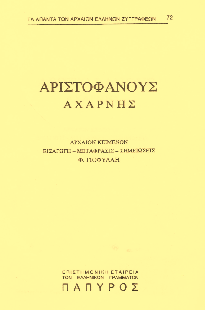 AΡΙΣΤΟΦΑΝΟΥΣ – Αχαρνής »,{ στ.674-5 }.