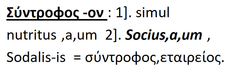 Socius -a-um =κοινός ,,συμμαχικός .Socius -ii = κοινωνός ,εταίρος ,σύμμαχος .