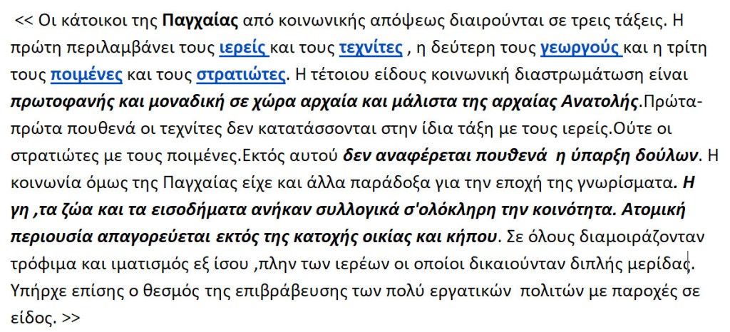 Στην Παγχαία νήσο ,δεν επιτρέπεται να έχει κανείς τίποτα δικό του ,εκτός από το σπίτι και τον κήπο του. Οι ιερείς μοιράζουν δίκαια στον καθένα μερίδιο από τις σοδειές.