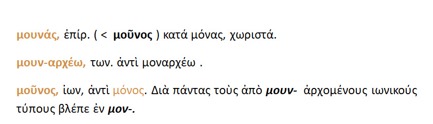 Μούνος [ ιων.}= μόνος.