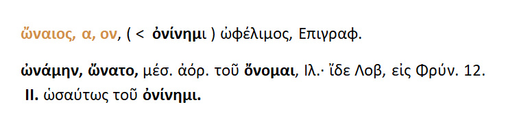 Ώναιος { < ονίνημι } = ωφέλιμος .