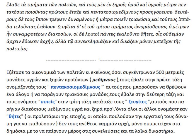 Ο σοφός νομοθέτης Σόλων διαίρεσε την αθηνα’ι’κή κοινωνία σε τάξεις ή κατηγορίες με οικονομικά κριτήρια 2.500 χρόνια πριν τον Μάρξ . Με την διαγραφή δε των χρεών σε μια ειδική κατηγορία πολιτών { σεισάχθεια } και την επιβολή της προοδευτικής φορολογίας ,ο Σόλων μπορεί να θεωρηθεί ως ο πρώτος πολιτικός ηγέτης ,που εφάρμοσε στην πράξη βασικές αρχές του σοσιαλισμού και μάλιστα αναίμακτα .!