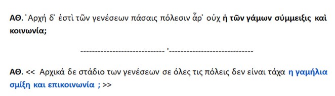 Αρχικό δε στάδιο των γενέσεων σε όλες τις πόλεις δεν είναι τάχα η γαμήλια σμίξη κι η επικοινωνία ;