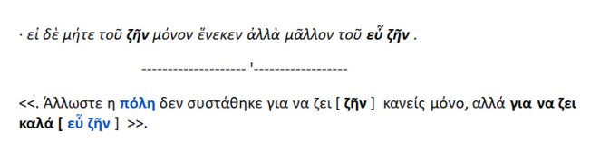 Η πόλη δεν συστάθηκε μόνο για να ζει κανείς ,αλλά για να ζει καλά.