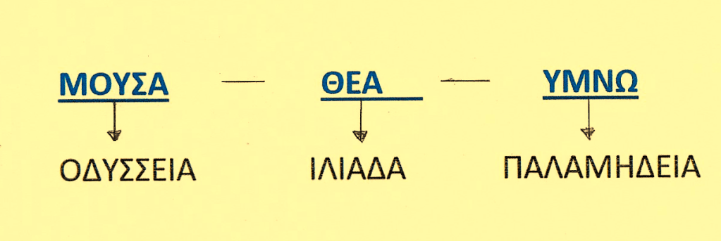 Μούσα {< μω = ζητώ} : η γνώσις ,επειδή αυτή τυγχάνει αιτία κάθε παιδείας. Όπως ήταν φυσικό ,οι αρχαίοι Έλληνες την ονόμασαν μούσαν. Είναι δε όλες μαζί εννέα [9]: Kλειώ,Ευτέρπη,Θάλεια,Μελπομένη,Τερψιχόρη,Ερατώ,Πολύμνια,Ουρανία,Καλλιόπη.