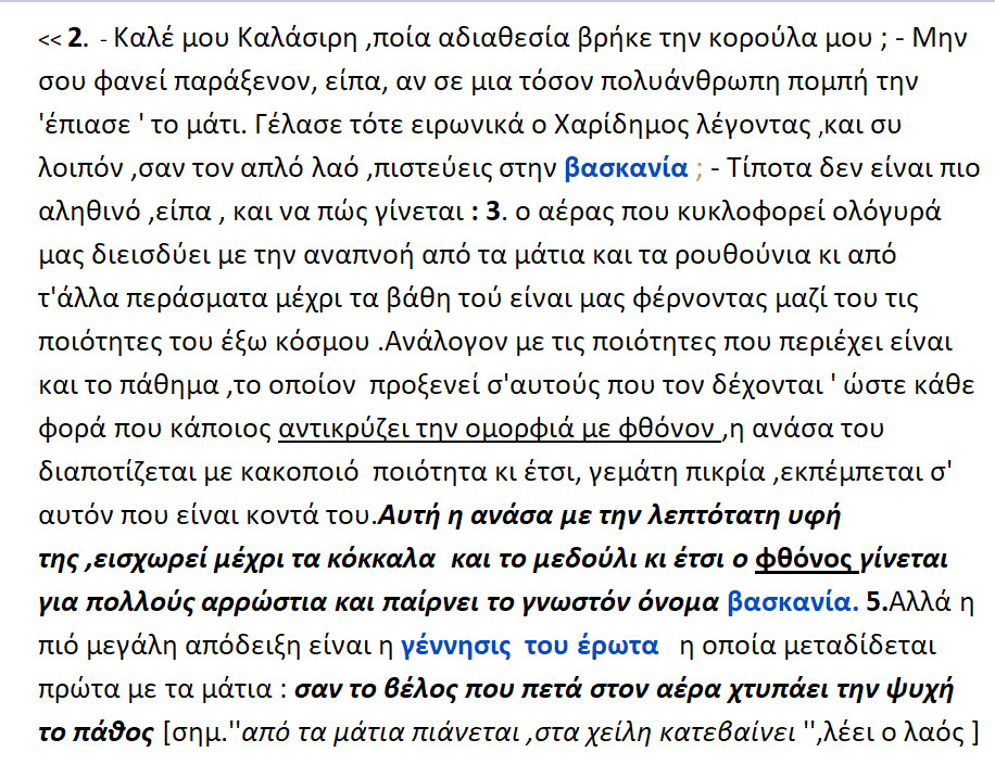 << Περί των καταβασκαίνειν λεγομένων ,και βάσκανον έχειν οφθαλμόν ».