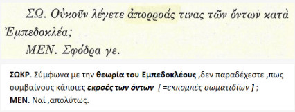 » πάντων εισίν απορροαί, όσσ’ εγένοντο »= για όλα όσα έγιναν υπάρχουν απορροές.