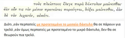 »εάν τις τον μέσον δάκτυλον προτείνων »= εάν κάποιος τέντωνε τον μέσο δάκτυλο.