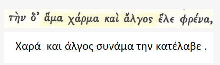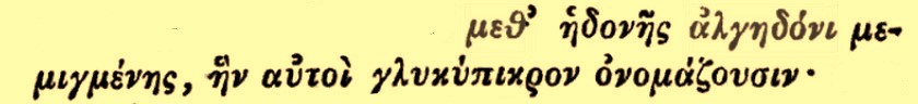 »ομού λύπας ηδοναίς παρατιθέναι » = μαζί να παραθέτουν λύπες και ηδονές.