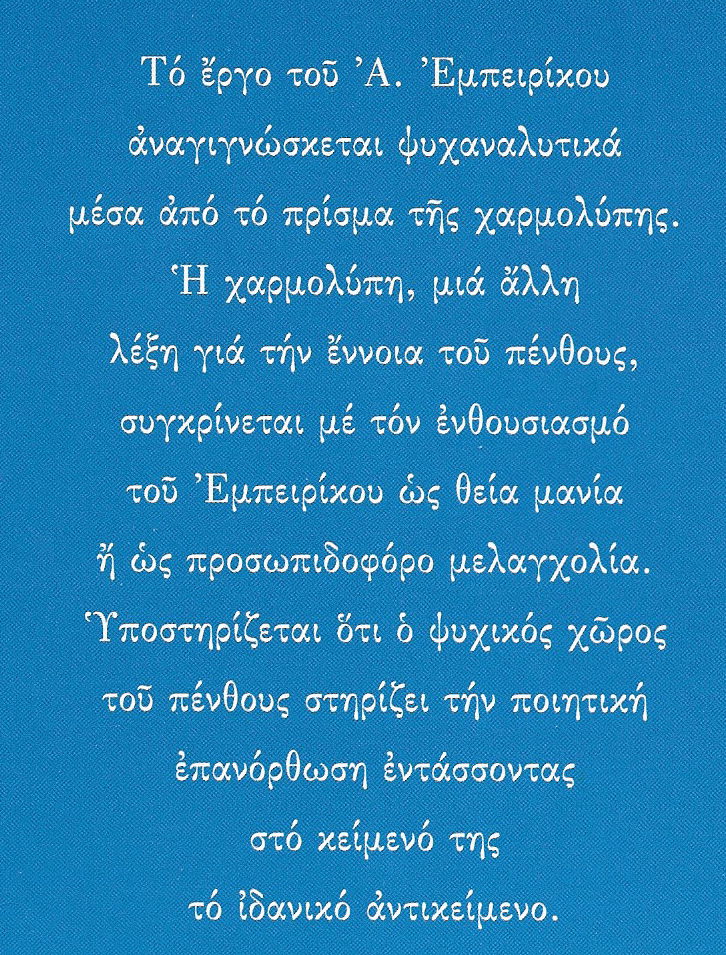 Ε.Γ.ΑΣΛΑΝΙΔΗ – » Ο Ανδρέας Εμπειρίκος και η χαρμολύπη », ,[ σελ. 26-27 ].